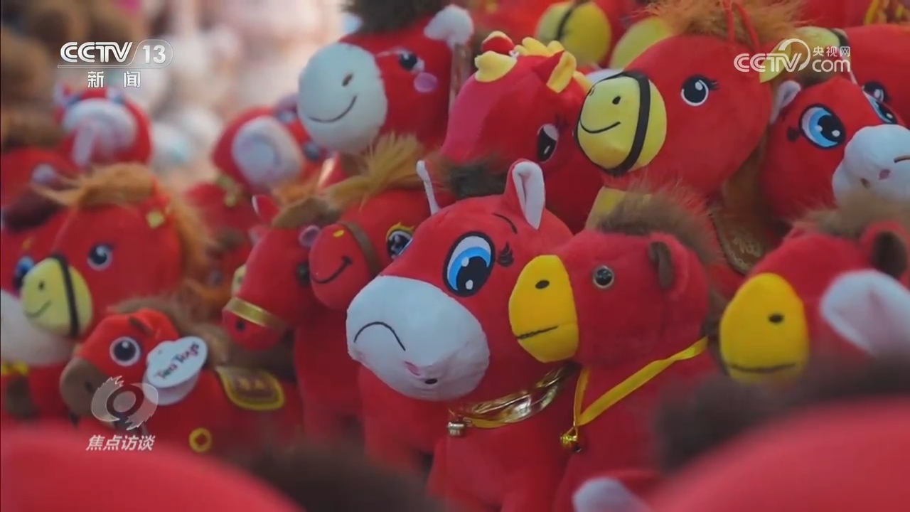 近年來,生肖文化、非遺主題的文創(chuàng)成為了新的過年硬通貨,給孩子帶上兩個馬年玩偶也是今年的潮流。在浙江義烏,今年春節(jié)年貨市場里,生肖經(jīng)濟(jì)日益火熱使得一款“哭哭馬”玩偶意外走紅??p反嘴的“錯版小馬”委屈的表情不但沒有被消費者嫌棄,反而因為提供了獨特的情緒價值,很快就成了爆款。