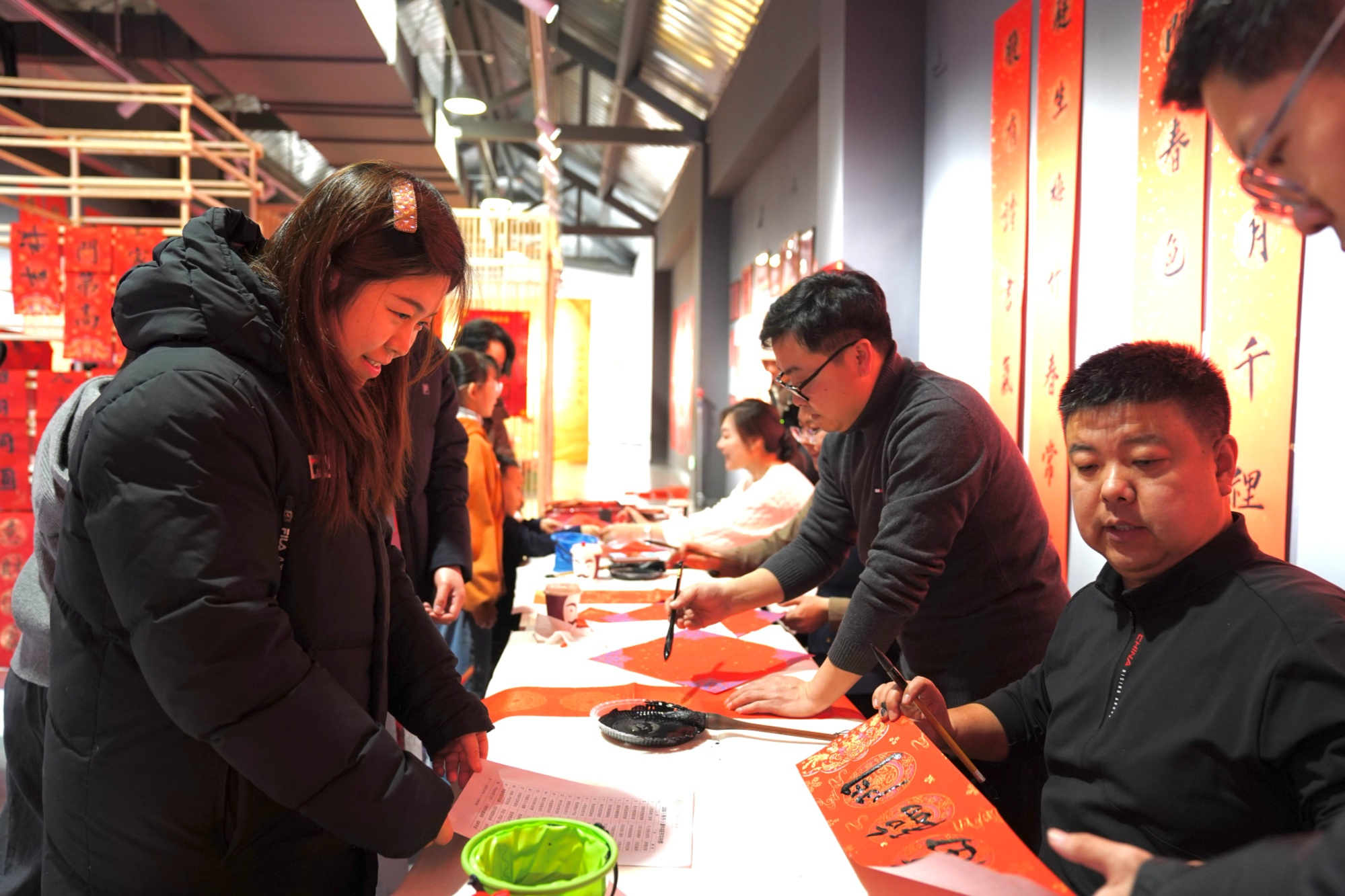 空·美術(shù)館里墨香四溢,長(zhǎng)春市青年書(shū)法家協(xié)會(huì)副主席郭洪日等四位書(shū)法家現(xiàn)場(chǎng)揮毫,“馬到成功添錦繡”“喜盈大冬啟新程”等春聯(lián)躍然紙上,將新春祝福與大冬會(huì)期盼融入筆墨,市民們手捧墨香春聯(lián),爭(zhēng)相與書(shū)法家、喜慶春聯(lián)合影,一張張笑臉在鏡頭中綻放。累計(jì)百余份春聯(lián)、福字免費(fèi)發(fā)放,每一份都成了市民打卡收藏的“新春文化禮”。