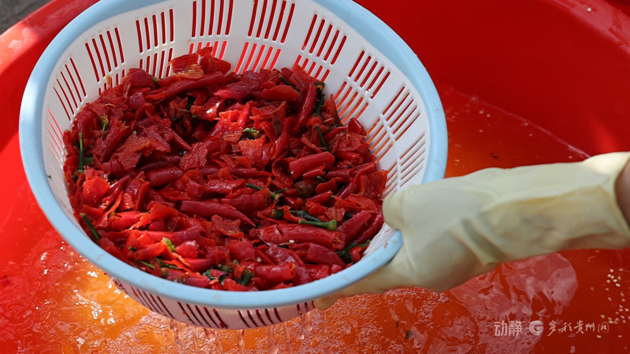 貴州省農(nóng)科院辣椒研究所“黔辣”育種團隊成員劉崇政正在分離采收的辣椒種