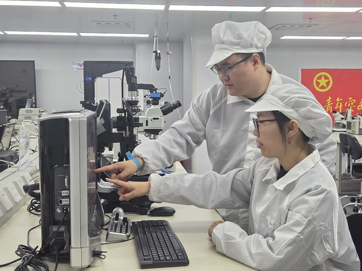 2月24日,春節(jié)假期后首個(gè)工作日。8時(shí),江蘇金陵機(jī)械制造總廠的超凈間里,無(wú)影燈準(zhǔn)時(shí)亮起。33歲的首席技師張?chǎng)┘瘬Q上防靜電服,快步走向工作臺(tái)。這是他每天開(kāi)啟“微米級(jí)挑戰(zhàn)”的固定場(chǎng)景。屏息凝神,手中的鍵合劈刀精準(zhǔn)起落。幾秒后,一個(gè)誤差僅0.003毫米的“蝶形焊點(diǎn)”成型。