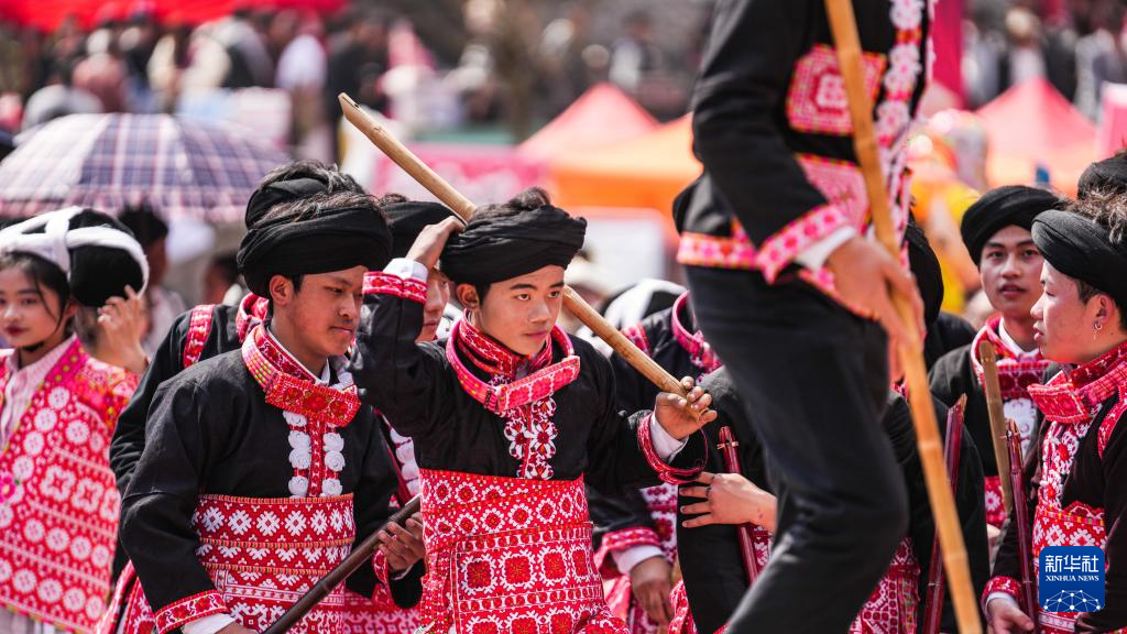 2月26日,在貴州省六盤水市六枝特區(qū)梭戛苗族彝族回族鄉(xiāng)高興村跳花場(chǎng),苗族群眾準(zhǔn)備上場(chǎng)表演。