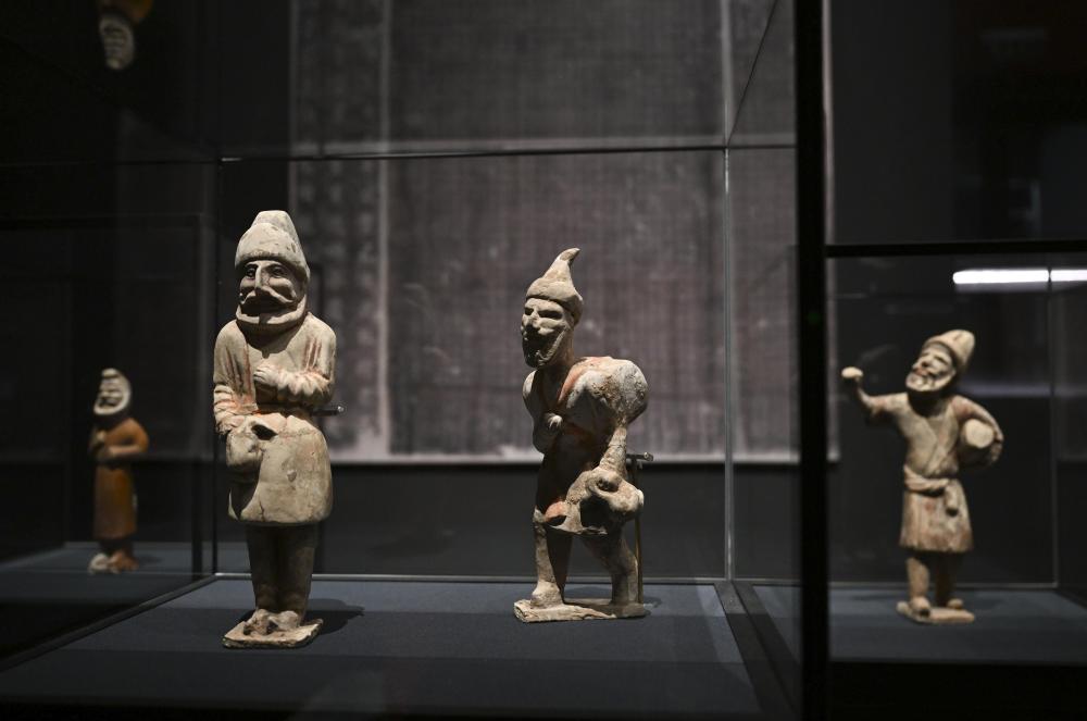 “歷史之遇——中國(guó)與西亞古代文明交流展”于1月12日至4月11日在故宮午門正殿展廳舉行。這是展出的陶彩繪人俑(1月10日攝)。新華社記者金良快攝