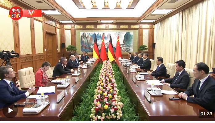 朔爾茨說(shuō):“主席先生,我很高興自2022年11月我上次來(lái)訪之后,兩國(guó)政府間進(jìn)行了深入的交流和多次對(duì)話。具有里程碑意義的是,去年六月在柏林成功召開(kāi)的第七輪德中政府間磋商。在過(guò)去兩天我率領(lǐng)一個(gè)商務(wù)代表團(tuán),參觀了在重慶和上海的德國(guó)企業(yè),兩國(guó)的經(jīng)濟(jì)關(guān)系是非常重要的議題?!?/p>