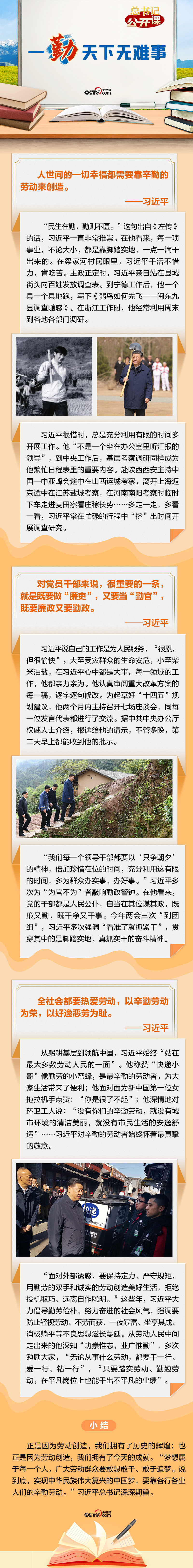 習(xí)近平總書記強調(diào),“一勤天下無難事”,“實現(xiàn)中華民族偉大復(fù)興的中國夢,要靠各行各業(yè)人們的辛勤勞動”?!扒凇笔秦灤┛倳洀恼牡钠焚|(zhì),是對他夙夜在公、勤勉工作最為凝練的概括。