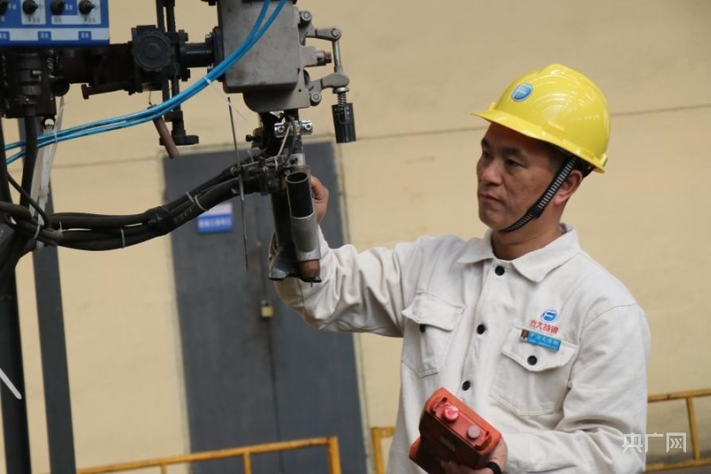 甘榮剛正在檢查焊接設備(央廣網(wǎng)記者 劉培俊 攝)