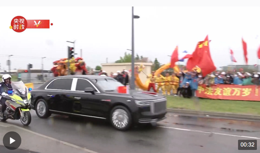 當(dāng)?shù)貢r(shí)間5月5日下午,國(guó)家主席習(xí)近平乘專機(jī)抵達(dá)巴黎。從機(jī)場(chǎng)前往下榻酒店途中,包括華人華僑和中國(guó)留學(xué)生代表在內(nèi)的歡迎人群揮舞著中法兩國(guó)國(guó)旗,敲鑼打鼓,舞龍舞獅,熱烈歡迎習(xí)近平主席到訪。