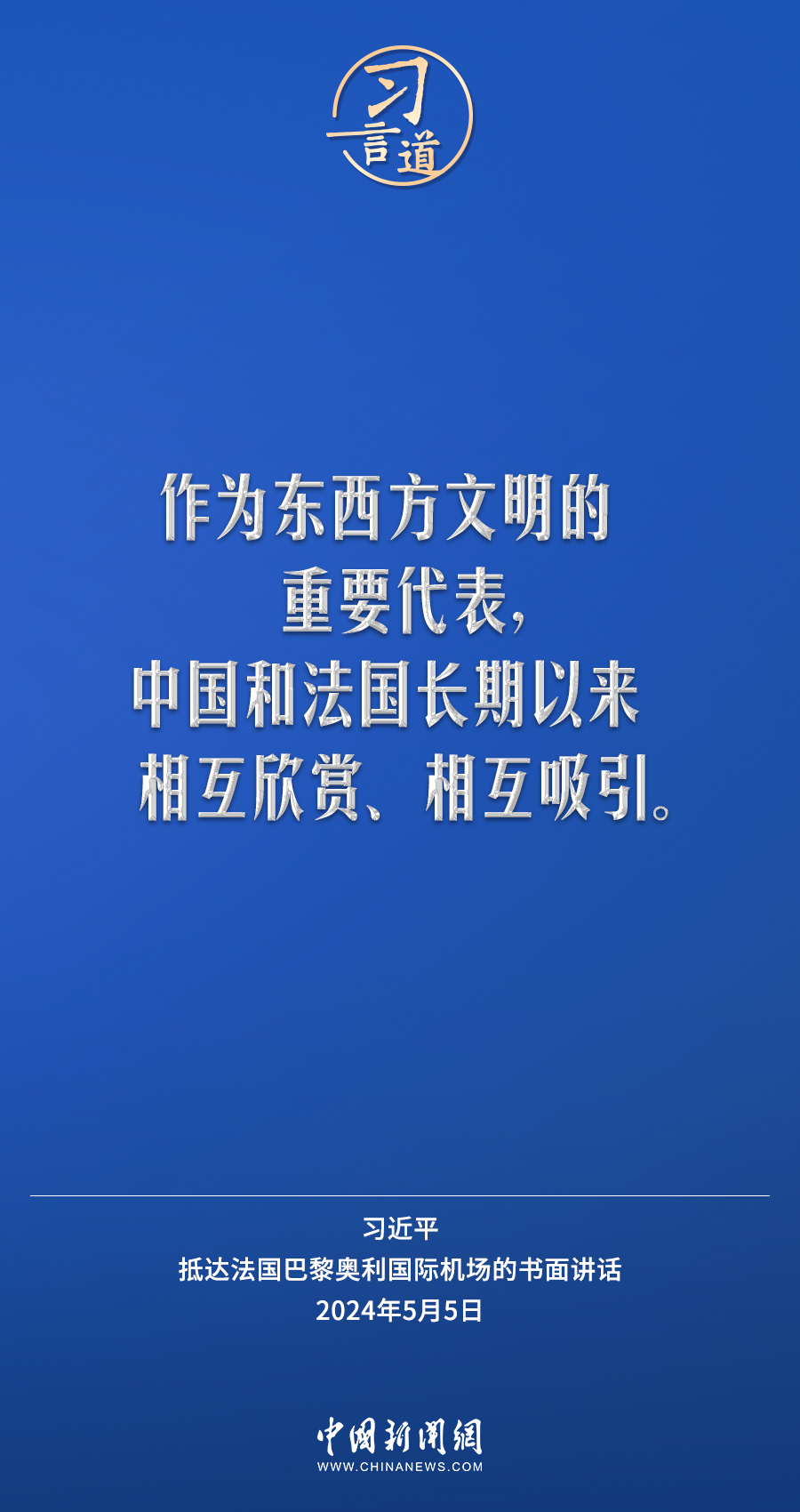 當(dāng)?shù)貢r(shí)間5月5日下午,國家主席習(xí)近平抵達(dá)巴黎,開始對法國進(jìn)行國事訪問。在抵達(dá)法國巴黎奧利國際機(jī)場的書面講話中,習(xí)近平指出——