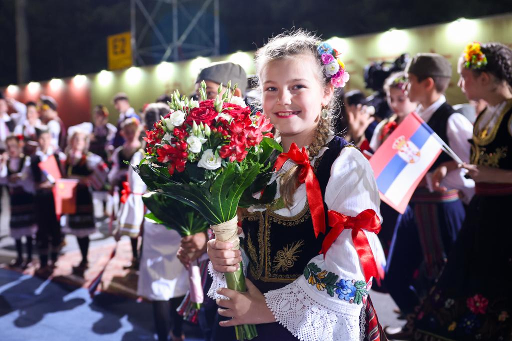 武契奇在機場為習近平舉行獨具特色的迎賓儀式。塞爾維亞少年兒童向習近平和彭麗媛獻花,揮舞中塞兩國國旗,身著民族盛裝的塞爾維亞民眾載歌載舞熱烈歡迎。