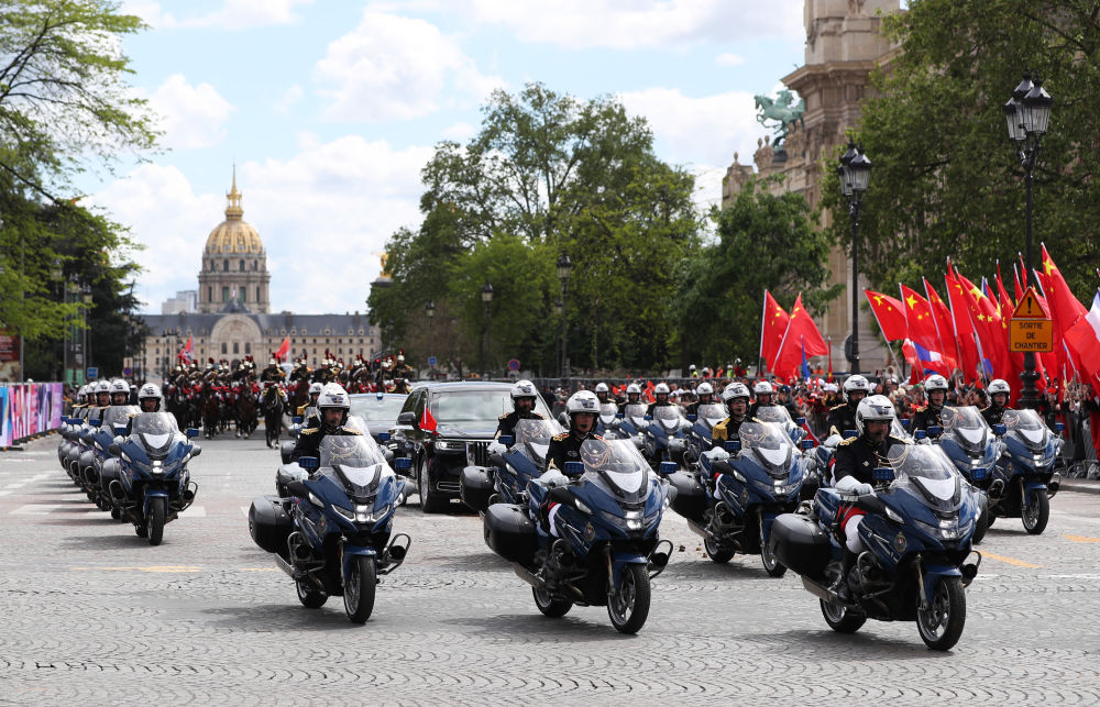 當(dāng)?shù)貢r(shí)間5月6日下午,正在法國(guó)進(jìn)行國(guó)事訪問(wèn)的國(guó)家主席習(xí)近平在巴黎出席法國(guó)總統(tǒng)馬克龍舉行的隆重盛大歡迎儀式。這是歡迎儀式后,習(xí)近平和夫人彭麗媛在共和國(guó)衛(wèi)隊(duì)148名騎兵組成的禮兵馬隊(duì)和摩托車(chē)隊(duì)護(hù)衛(wèi)下,乘車(chē)前往愛(ài)麗舍宮。新華社記者 高靜 攝
