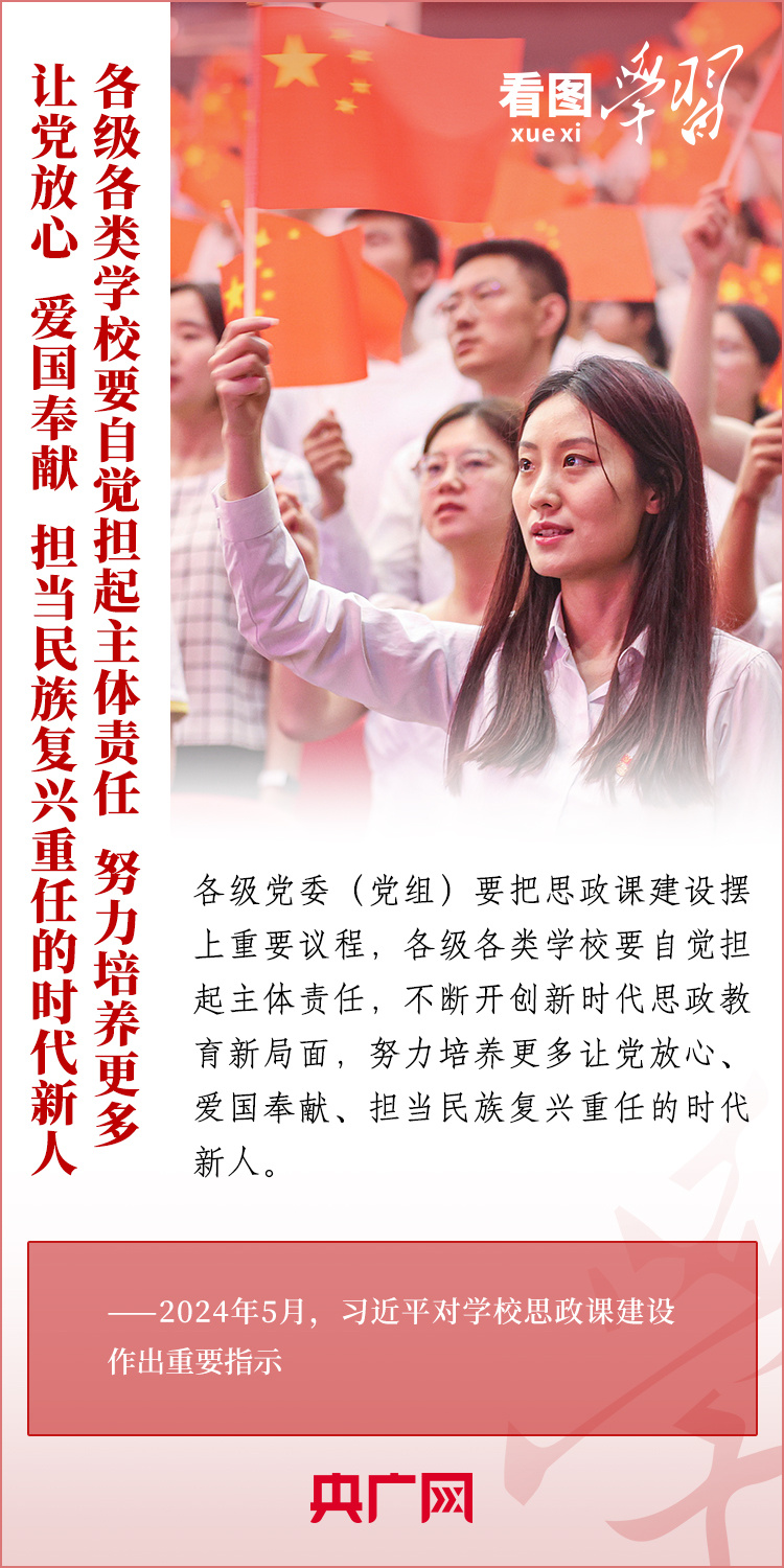 近日,習(xí)近平總書記對學(xué)校思政課建設(shè)作出重要指示??倳洀娬{(diào),新時代新征程上,思政課建設(shè)面臨新形勢新任務(wù),必須有新氣象新作為。各級黨委(黨組)要把思政課建設(shè)擺上重要議程,各級各類學(xué)校要自覺擔(dān)起主體責(zé)任,不斷開創(chuàng)新時代思政教育新局面,努力培養(yǎng)更多讓黨放心、愛國奉獻、擔(dān)當(dāng)民族復(fù)興重任的時代新人。一起來學(xué)習(xí)!