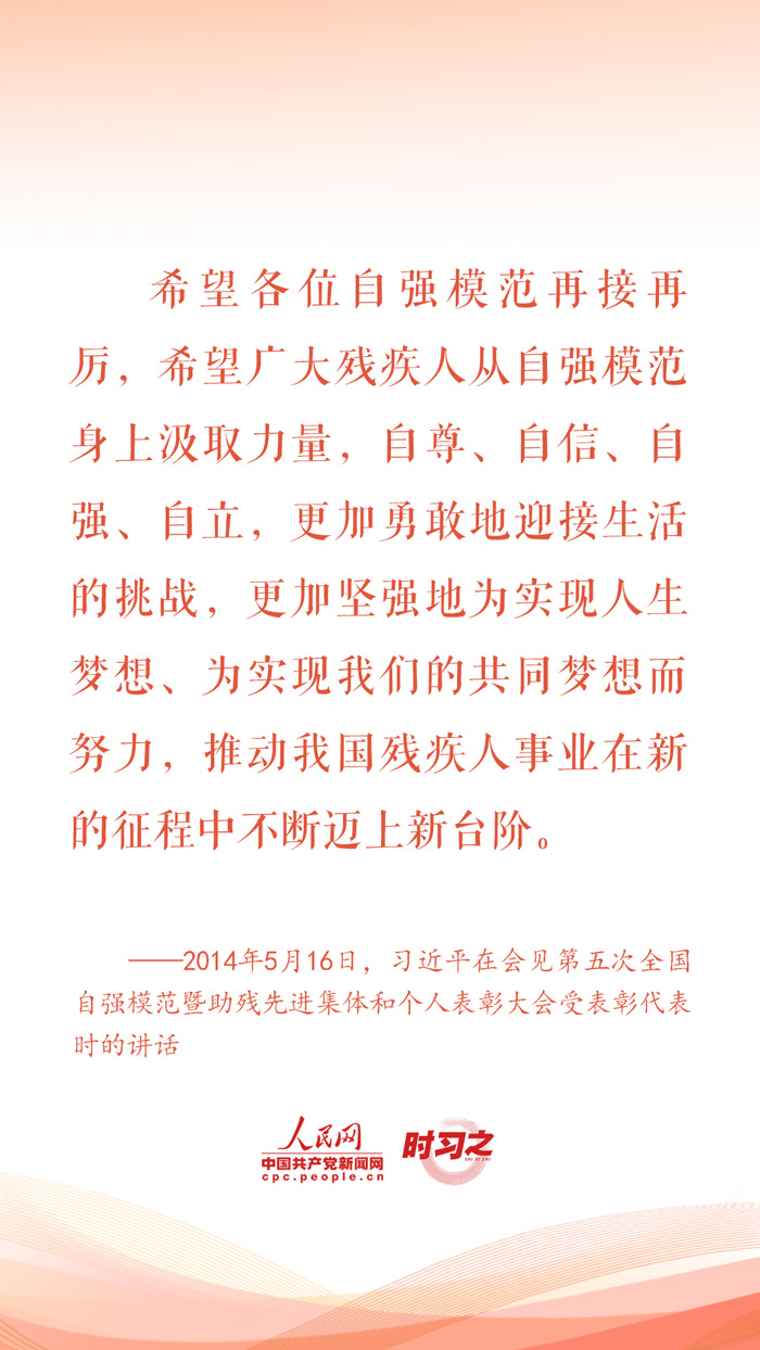 2024年5月19日是第三十四次全國助殘日。對于殘疾人這個特殊群體,習近平總書記始終格外關心、格外關注,在不同場合頻頻為他們加油鼓勁,勉勵他們活出精彩的人生。