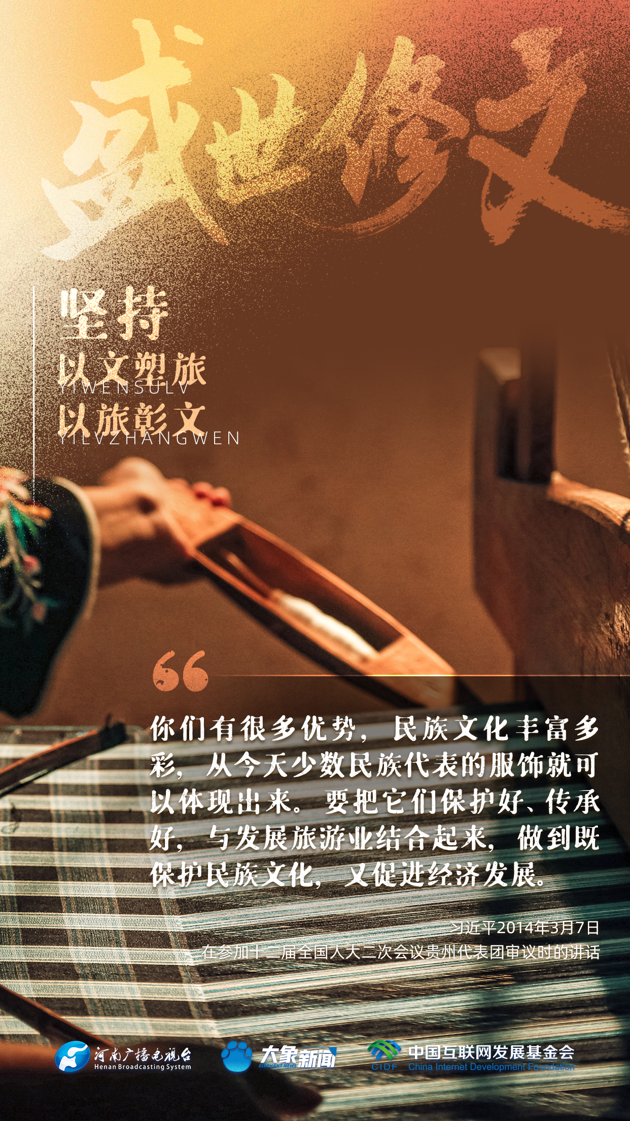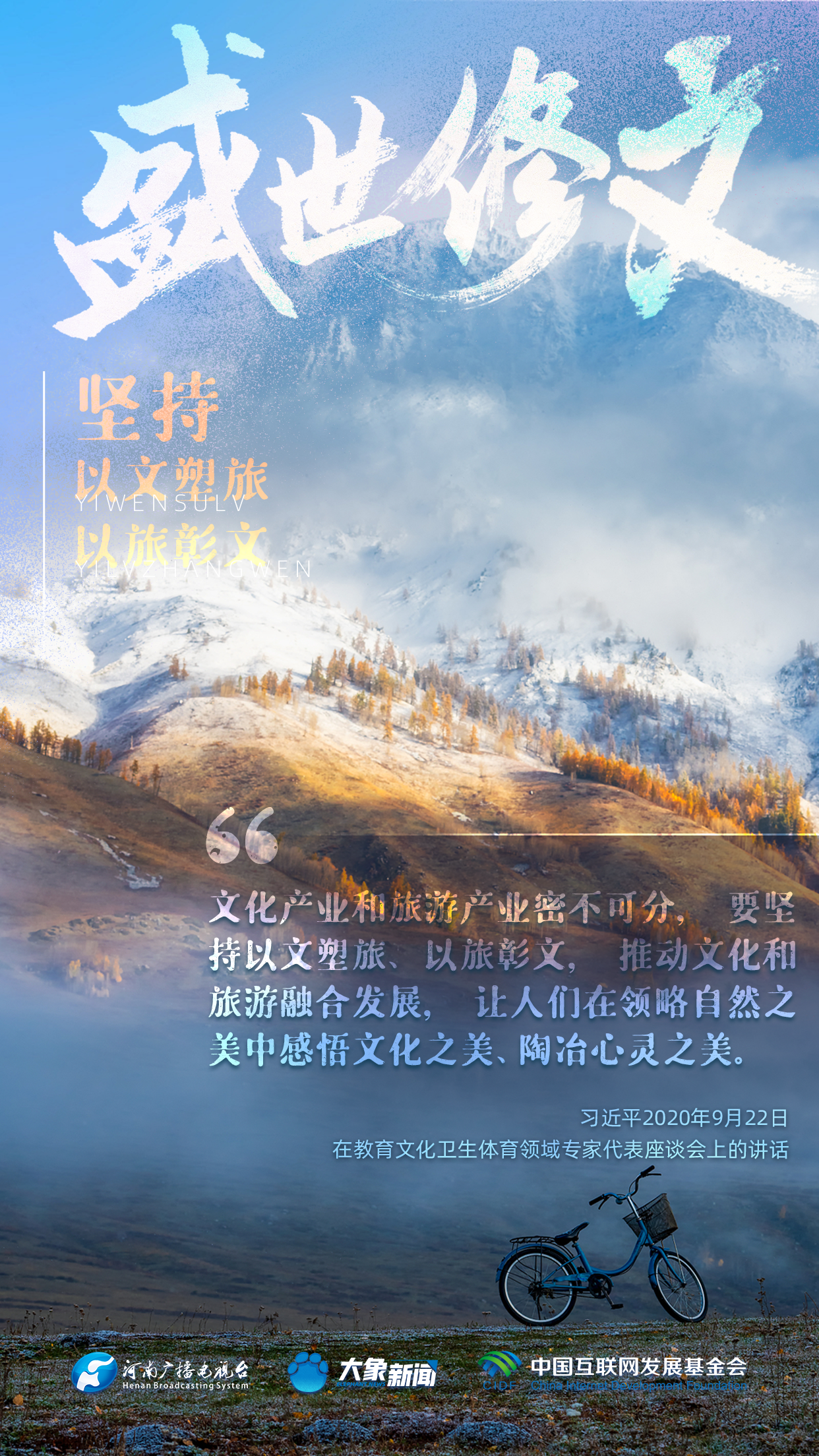 今天推出:習近平文化思想金句之《盛世修文|堅持以文塑旅、以旅彰文》