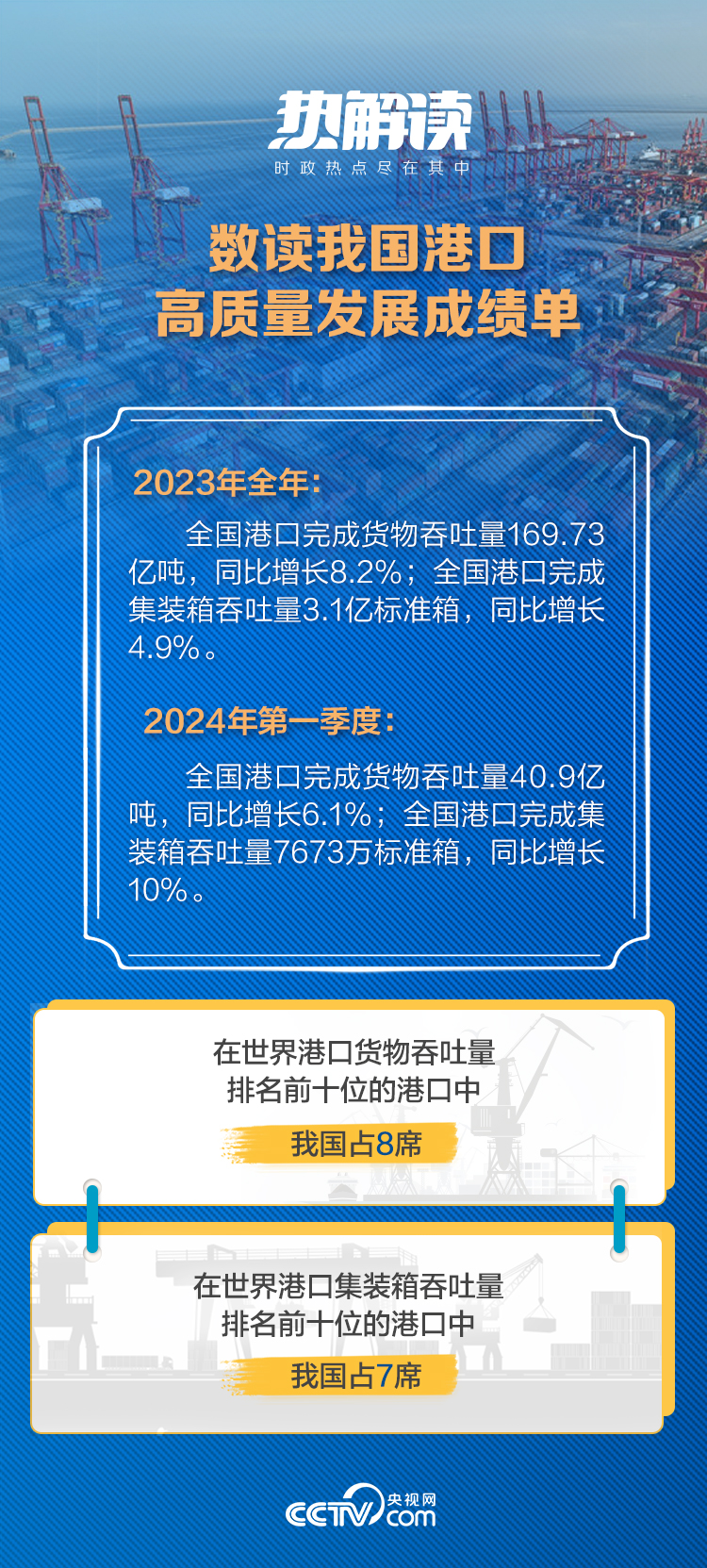 透過港口這扇窗,我們能看到“志在萬里”、向海圖強(qiáng)的戰(zhàn)略定力,也能深刻感受到中國(guó)經(jīng)濟(jì)的強(qiáng)大韌勁和旺盛活力。