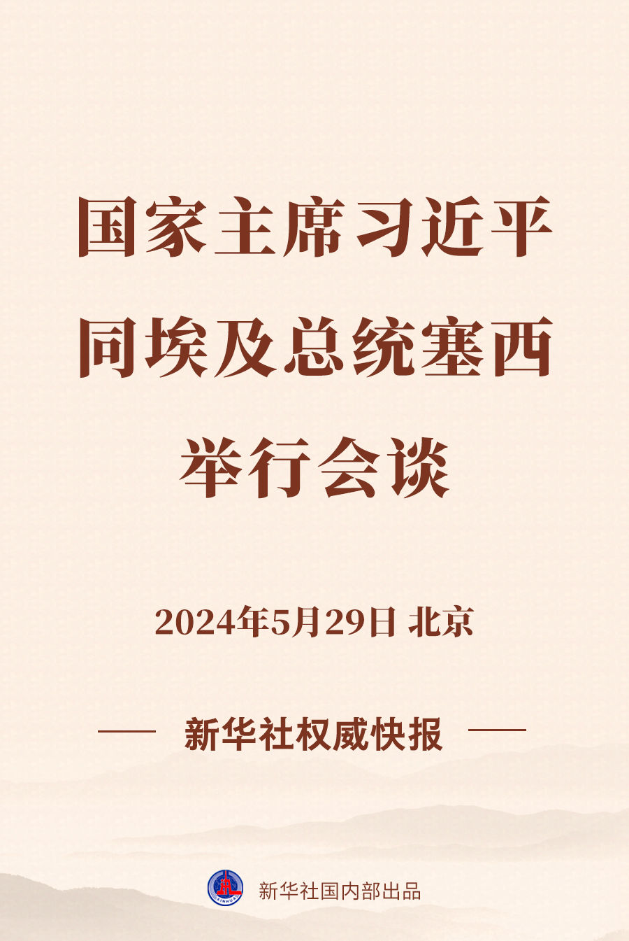 5月29日下午,國家主席習(xí)近平在北京人民大會(huì)堂同來華進(jìn)行國事訪問的埃及總統(tǒng)塞西舉行會(huì)談。