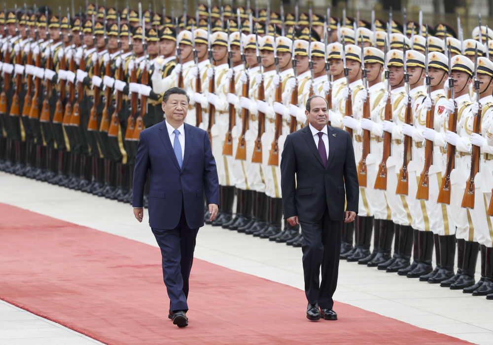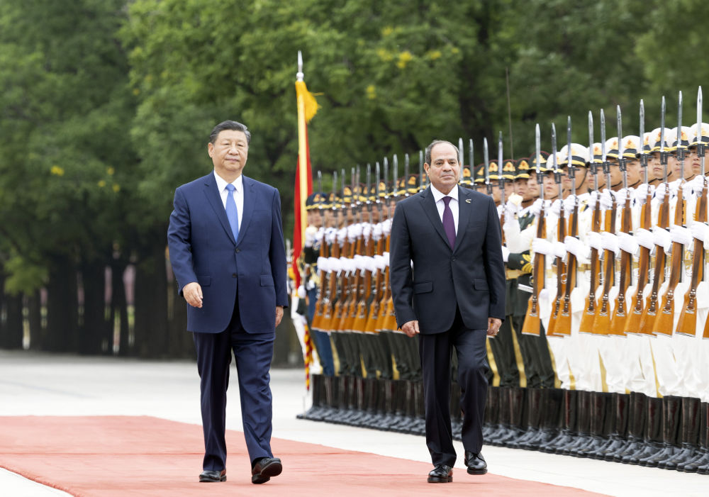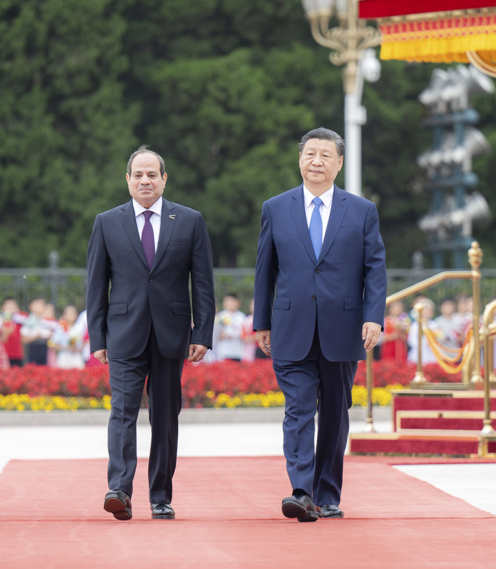 5月29日下午,國家主席習(xí)近平在北京人民大會堂同來華出席中國-阿拉伯國家合作論壇第十屆部長級會議開幕式并進(jìn)行國事訪問的埃及總統(tǒng)塞西舉行會談。這是會談前,習(xí)近平在人民大會堂東門外廣場為塞西舉行歡迎儀式。