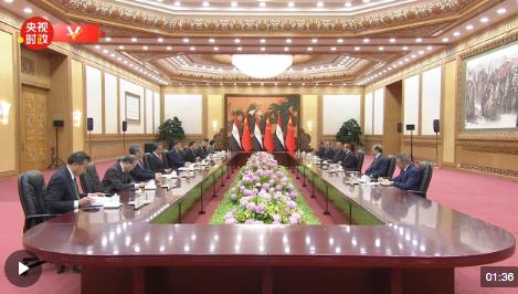 5月29日下午,國家主席習(xí)近平在北京人民大會(huì)堂同來華出席中國—阿拉伯國家合作論壇第十屆部長級會(huì)議開幕式并進(jìn)行國事訪問的埃及總統(tǒng)塞西舉行會(huì)談。