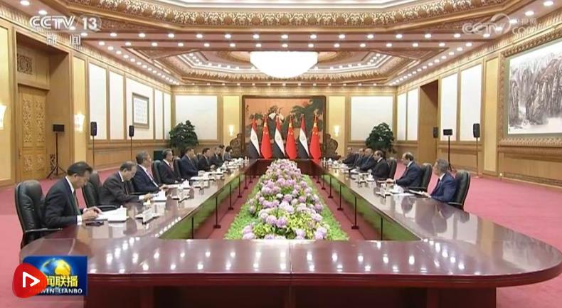 塞西表示,很高興來華進行國事訪問并出席中阿合作論壇第十屆部長級會議開幕式。當(dāng)前世界正處于深刻復(fù)雜變化之中,中東地區(qū)深陷危機。埃方期待同中方進一步深化全面戰(zhàn)略伙伴關(guān)系,努力促進地區(qū)和平穩(wěn)定。埃方恪守一個中國原則,堅定支持中方在涉臺、涉港、涉藏、人權(quán)等核心利益問題上的立場,堅定支持中國實現(xiàn)國家完全統(tǒng)一。埃方歡迎更多中國企業(yè)赴埃投資合作,助力埃及制造業(yè)發(fā)展和工業(yè)化進程。希望以今年“埃中伙伴年”為契機,密切人文交流,加強兩國在信息通訊、人工智能、新能源、糧食安全、金融等方面合作。埃方贊賞習(xí)近平主席提出的系列全球倡議,愿同中方密切多邊協(xié)作,為人類和平進步作出積極貢獻。