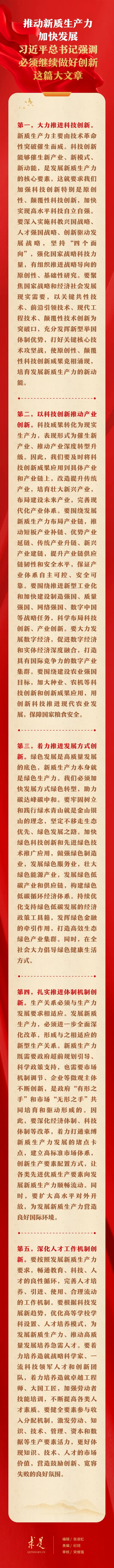 “新質(zhì)生產(chǎn)力的顯著特點(diǎn)是創(chuàng)新,既包括技術(shù)和業(yè)態(tài)模式層面的創(chuàng)新,也包括管理和制度層面的創(chuàng)新。必須繼續(xù)做好創(chuàng)新這篇大文章,推動(dòng)新質(zhì)生產(chǎn)力加快發(fā)展。”