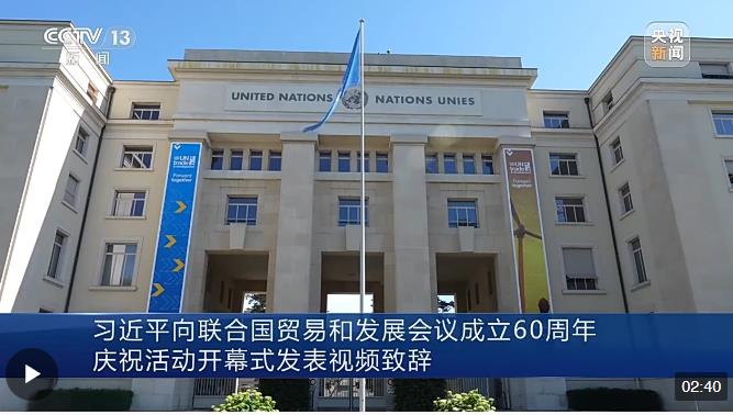 6月12日,國家主席習近平向聯(lián)合國貿易和發(fā)展會議成立60周年慶?;顒娱_幕式發(fā)表視頻致辭。