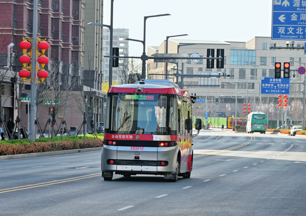 智能網(wǎng)聯(lián)巴士在雄安新區(qū)容東片區(qū)道路上行駛(2024 年 3 月 29 日攝)牟宇攝