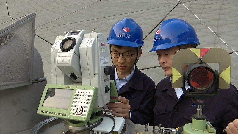 “中國(guó)天眼”團(tuán)隊(duì)的技術(shù)人員正在操作設(shè)備,開(kāi)展科研工作。