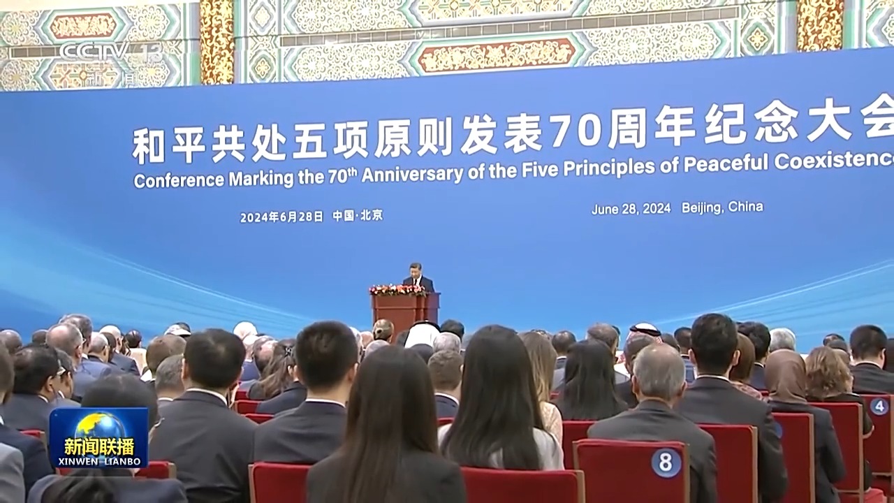 6月28日,國(guó)家主席習(xí)近平出席和平共處五項(xiàng)原則發(fā)表70周年紀(jì)念大會(huì),并發(fā)表題為《弘揚(yáng)和平共處五項(xiàng)原則,攜手構(gòu)建人類命運(yùn)共同體》的重要講話。習(xí)近平主席在講話中全面闡釋和平共處五項(xiàng)原則的精神內(nèi)涵和時(shí)代價(jià)值,在世界百年未有之大變局中指明構(gòu)建人類命運(yùn)共同體的前進(jìn)方向,發(fā)出“全球南方”同世界各國(guó)人民共創(chuàng)美好未來(lái)的時(shí)代強(qiáng)音。與會(huì)國(guó)內(nèi)外人士表示,習(xí)近平主席的重要講話飽含著對(duì)歷史的深邃思考、對(duì)現(xiàn)實(shí)的深刻分析、對(duì)未來(lái)的長(zhǎng)遠(yuǎn)謀劃,必將對(duì)推動(dòng)各國(guó)同心協(xié)力建設(shè)更加美好世界產(chǎn)生重大而深遠(yuǎn)的影響。