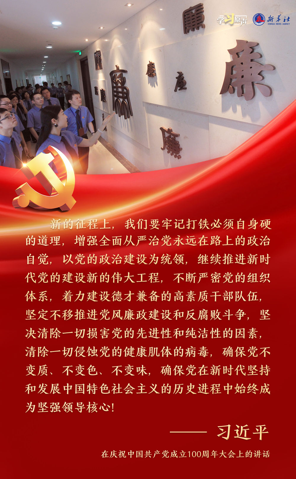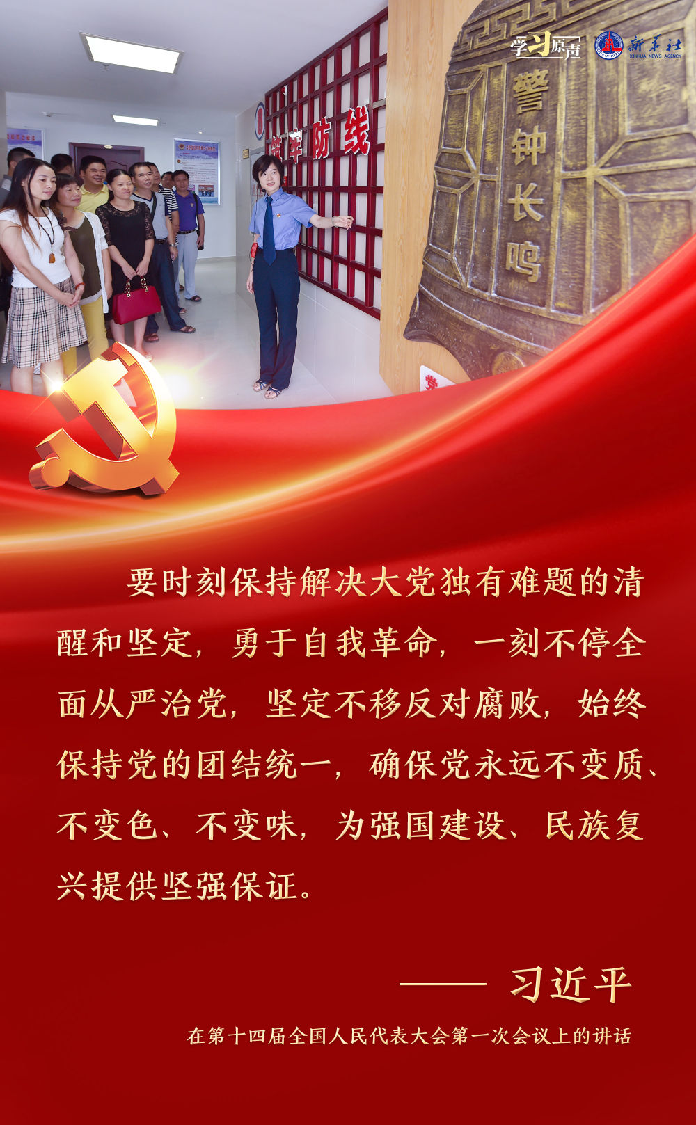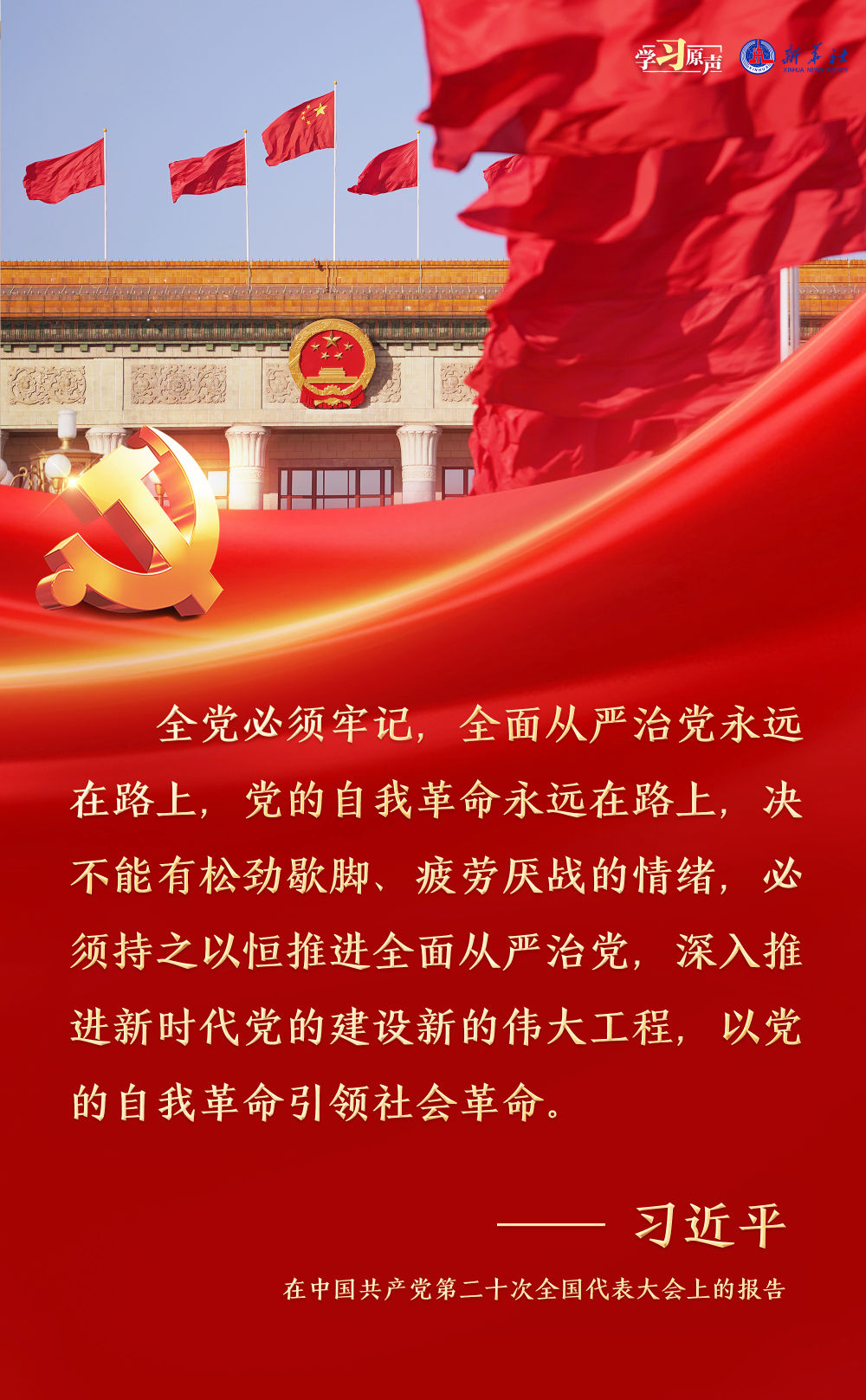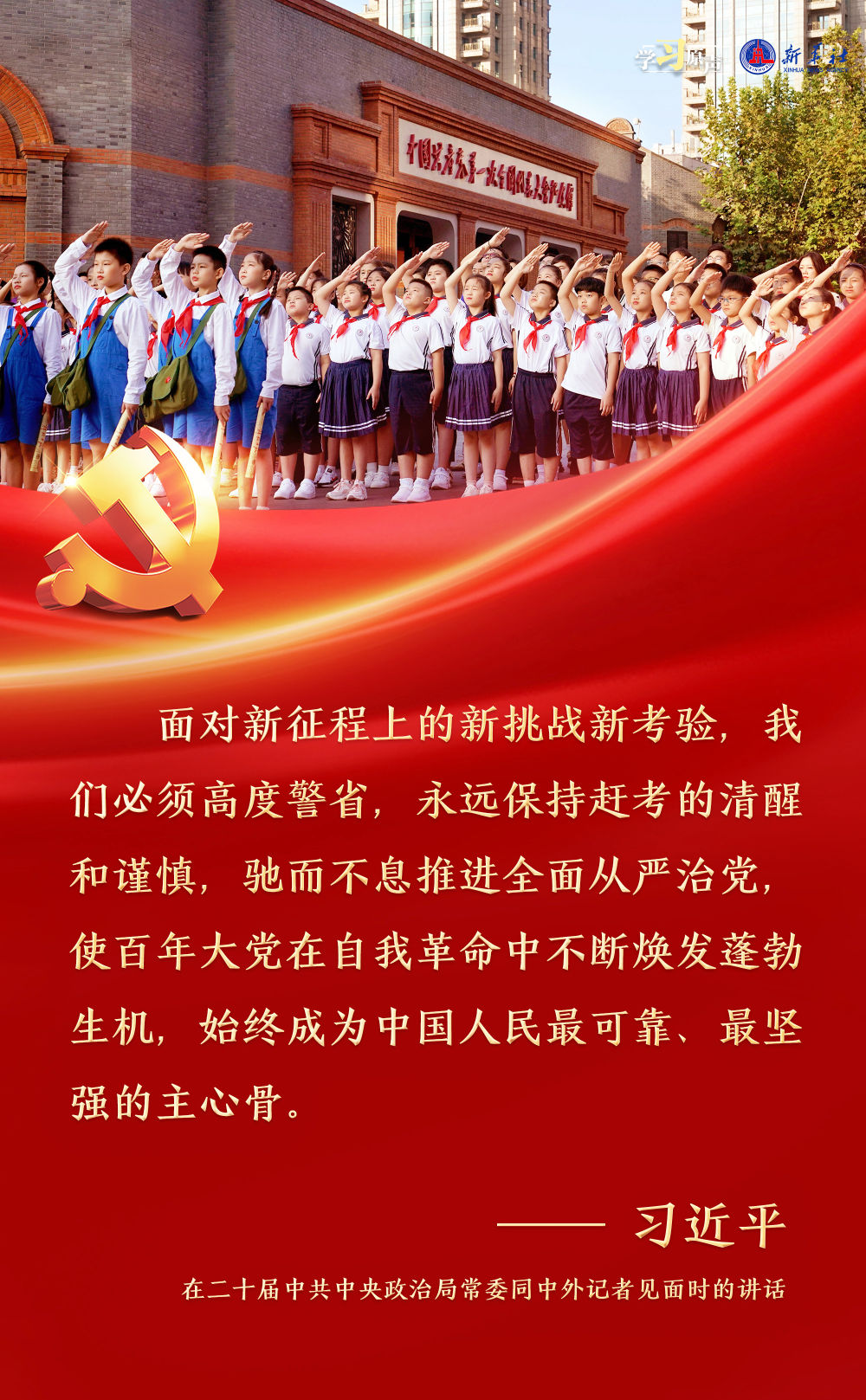 習(xí)近平總書記強(qiáng)調(diào),面對新征程上的新挑戰(zhàn)新考驗(yàn),我們必須高度警省,永遠(yuǎn)保持趕考的清醒和謹(jǐn)慎,馳而不息推進(jìn)全面從嚴(yán)治黨,使百年大黨在自我革命中不斷煥發(fā)蓬勃生機(jī),始終成為中國人民最可靠、最堅強(qiáng)的主心骨。