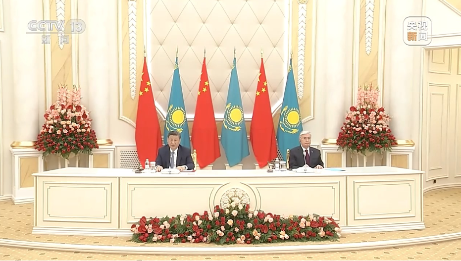 習(xí)近平指出,這是我第五次訪問友好鄰邦哈薩克斯坦,也是我同托卡耶夫總統(tǒng)時隔9個月再次會晤。剛才我同托卡耶夫總統(tǒng)舉行了親切友好、富有成果的會談,達(dá)成廣泛共識,共同簽署了《中華人民共和國和哈薩克斯坦共和國聯(lián)合聲明》,共同規(guī)劃兩國未來合作重點方向,我們還見證交換了兩國多項政府間、部門間合作文件,涉及經(jīng)貿(mào)、互聯(lián)互通、能源、農(nóng)業(yè)、科技、人文等重點領(lǐng)域,為中哈關(guān)系高質(zhì)量發(fā)展注入新動力。