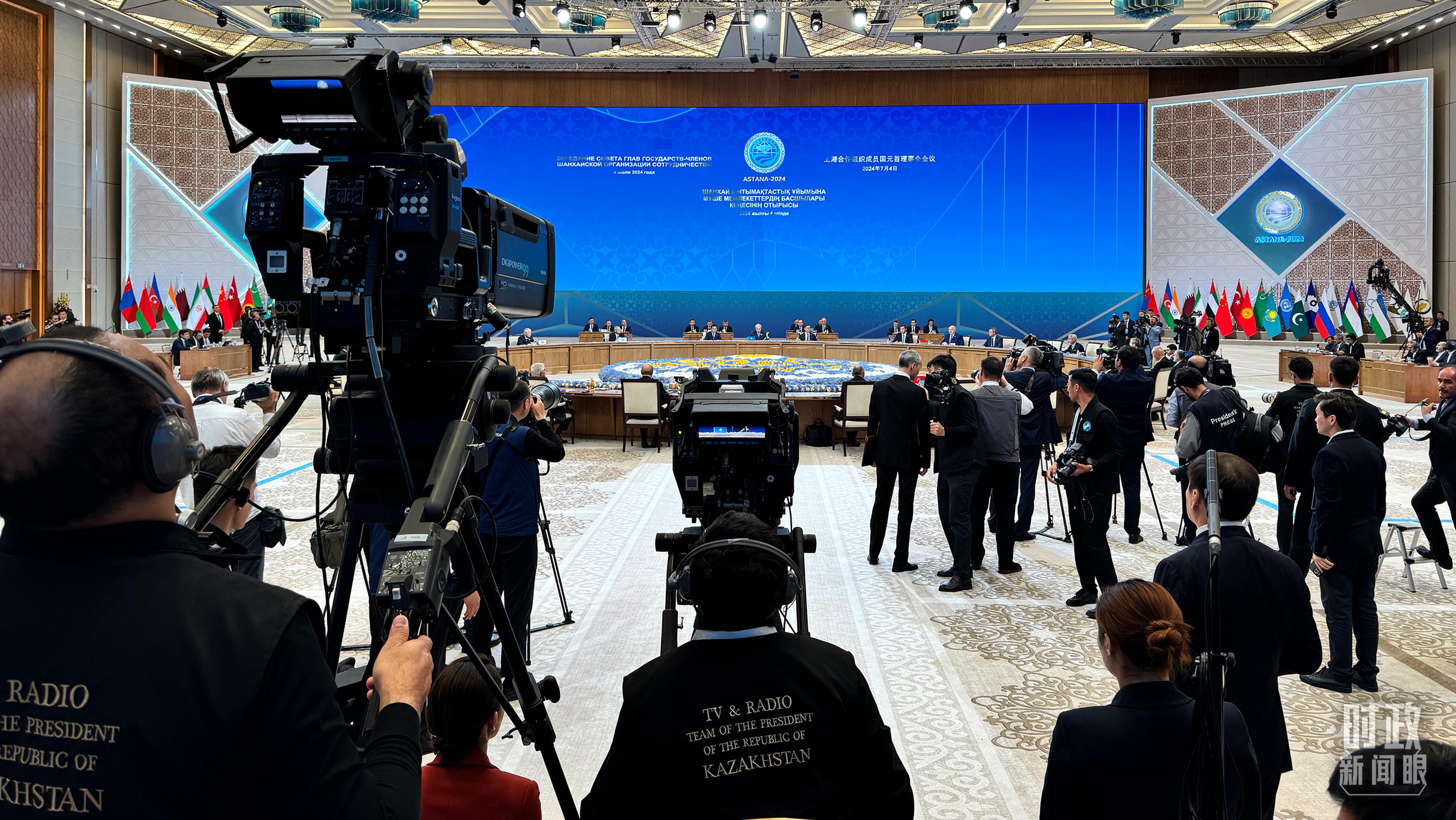當(dāng)天下午,“上海合作組織+”阿斯塔納峰會(huì)在這里舉行,這是會(huì)議開始前。(總臺(tái)央視記者石丞拍攝)