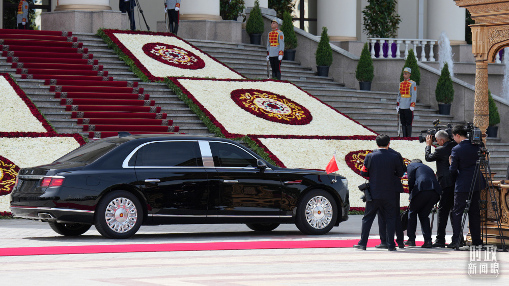 習(xí)主席乘坐的紅旗車抵達(dá)塔總統(tǒng)府。(總臺記者李晉拍攝)