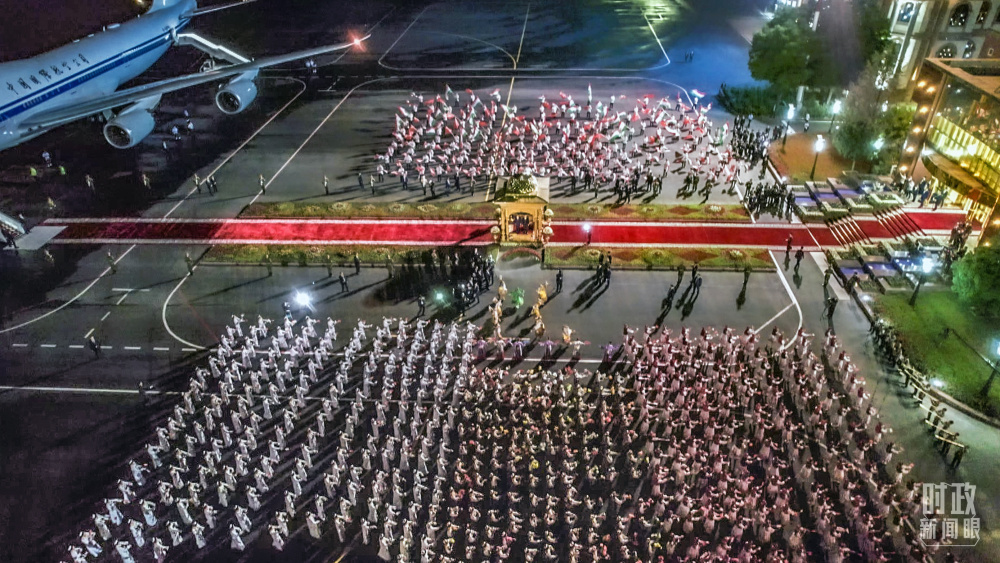 塔方在機(jī)場舉行的盛大迎賓儀式。(總臺央視記者邢彬)