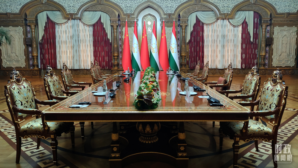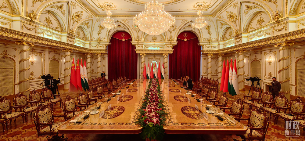 中塔元首大范圍會談開始前的會場。(總臺央視記者段德文拍攝)