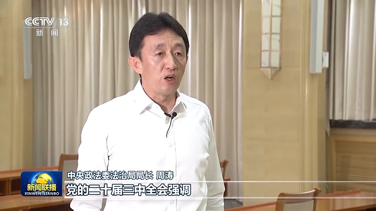 中央政法委法治局局長 周濤:黨的二十屆三中全會強(qiáng)調(diào),法治是中國式現(xiàn)代化的重要保障,進(jìn)一步全面深化政法改革,要協(xié)同推進(jìn)立法、執(zhí)法、司法、守法各環(huán)節(jié)改革,健全法律面前人人平等保障機(jī)制。我們將圍繞《決定》作出的改革部署,科學(xué)制定實(shí)施方案,全面貫徹落實(shí)習(xí)近平法治思想,更加注重改革和立法同步,更加注重系統(tǒng)集成、協(xié)同高效。