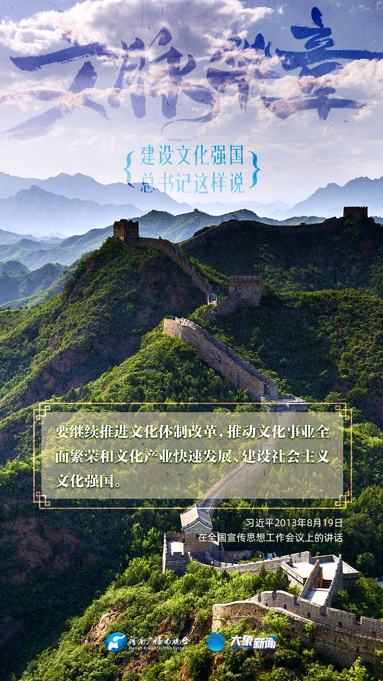 黨的十八大以來,習(xí)近平總書記站在全局和戰(zhàn)略高度,就建設(shè)社會主義文化強(qiáng)國提出一系列新思想新觀點新論斷,為我們堅定文化自信,堅持中國特色社會主義文化發(fā)展道路,提供了指引。大象新聞與您一起學(xué)習(xí)、領(lǐng)悟。