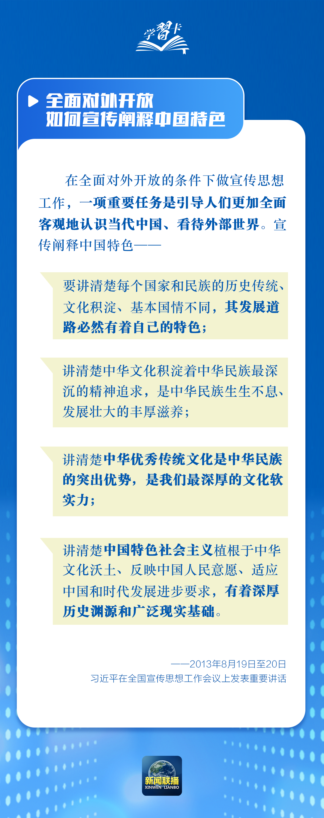 習(xí)近平總書記高度重視國際傳播能力建設(shè),指出當(dāng)前外宣工作處于歷史最好時期,同時也面臨最大壓力,強調(diào)要全面加強和改進國際傳播工作,深化文明交流互鑒,形成同我國綜合國力和國際地位相匹配的國際話語權(quán),增強中華文明傳播力影響力。一起學(xué)習(xí)↓