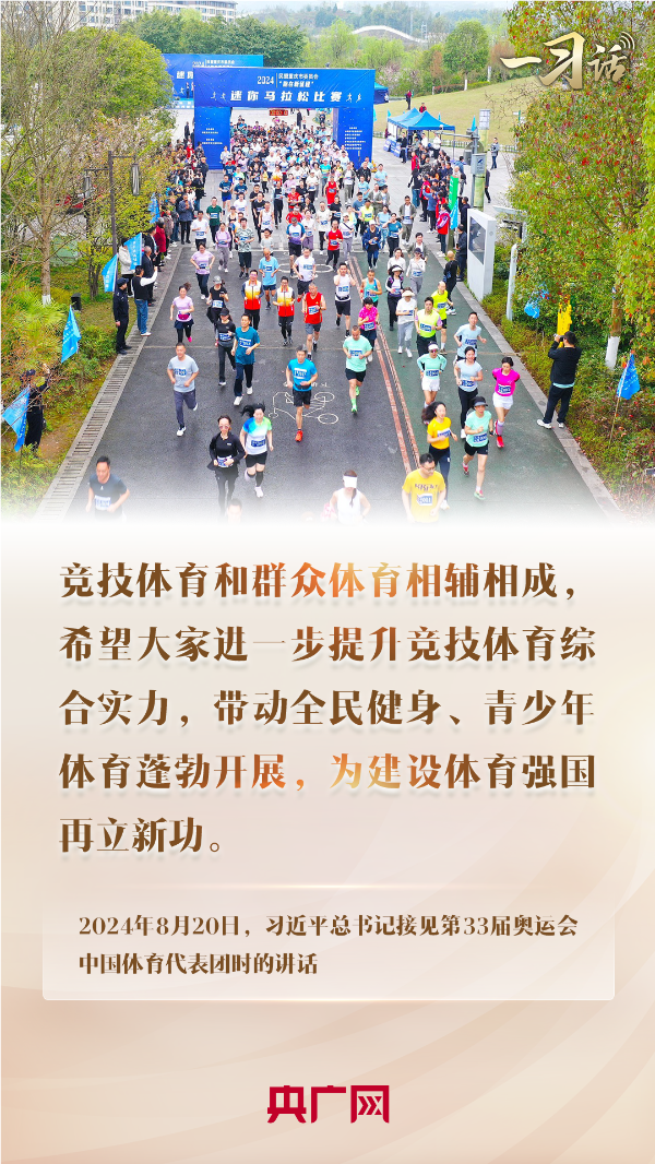 今天,參加各類體育活動(dòng)正成為我們生活中許多人的一種生活方式。正如前不久奪得首屆奧運(yùn)大眾馬拉松女子組冠軍的“90后”銀行程序員黃雪梅所說,作為一名業(yè)余選手,好成績(jī)的取得與生活區(qū)周邊越來越好的體育鍛煉環(huán)境密不可分。黨的二十屆三中全會(huì)提出,要完善全民健身公共服務(wù)體系,改革完善競(jìng)技體育管理體制和運(yùn)行機(jī)制。我們要貫徹落實(shí)習(xí)近平總書記接見中國(guó)體育代表團(tuán)時(shí)的重要講話精神,在進(jìn)一步提升競(jìng)技體育綜合實(shí)力同時(shí),帶動(dòng)全民健身、青少年體育蓬勃發(fā)展,大力弘揚(yáng)中國(guó)奧運(yùn)會(huì)健兒在本屆奧運(yùn)會(huì)上展現(xiàn)出的中華體育精神,共同推動(dòng)體育強(qiáng)國(guó)和健康中國(guó)的發(fā)展。