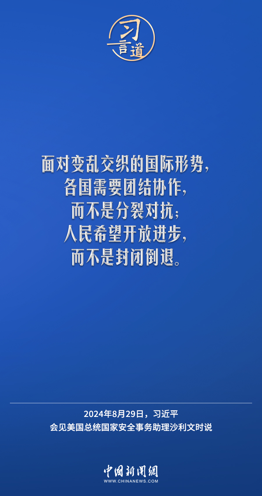8月29日,國家主席習近平在北京人民大會堂會見美國總統(tǒng)國家安全事務助理沙利文。習近平指出——