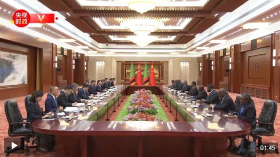 習(xí)近平指出,很高興再次同總統(tǒng)先生會(huì)面,剛才我們共同見證坦贊鐵路市場化激活合作文件簽署,意義重大。歡迎你出席中非合作論壇北京峰會(huì)。我們愿同包括贊比亞在內(nèi)的非方一道,推動(dòng)這次峰會(huì)取得圓滿成功,為中贊、中非關(guān)系注入新動(dòng)力。我愿同你一道,以這次峰會(huì)為契機(jī),攜手推進(jìn)各自國家現(xiàn)代化,為中贊友好關(guān)系新甲子開好頭、譜新篇。
