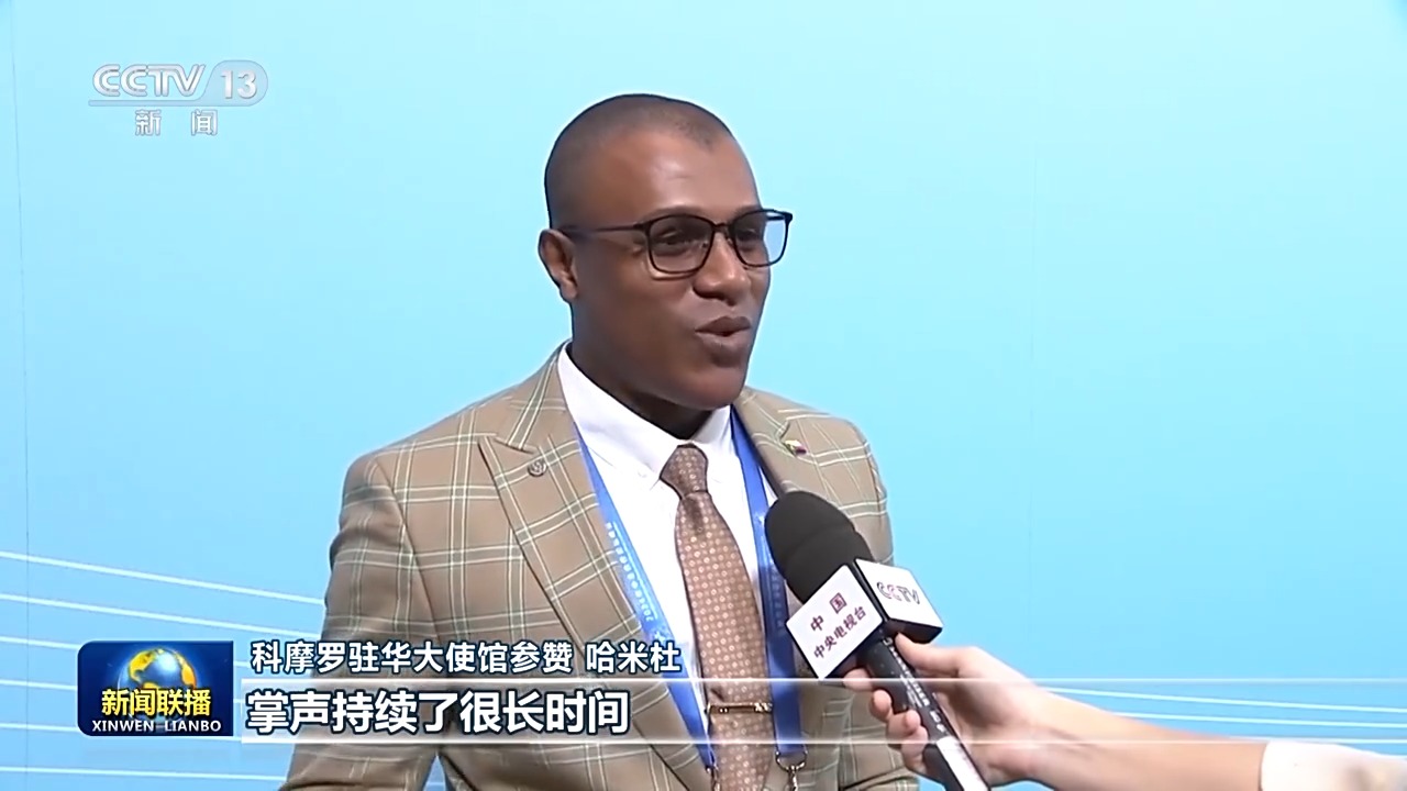科摩羅駐華大使館參贊 哈米杜:每一個在現場聆聽講話的人都感到很振奮。大家都在鼓掌,掌聲持續(xù)了很長時間。中非關系整體定位提升至新時代全天候中非命運共同體,它將為非洲的發(fā)展帶來更多機遇,將促進中非雙方以及非洲國家之間的交流合作。