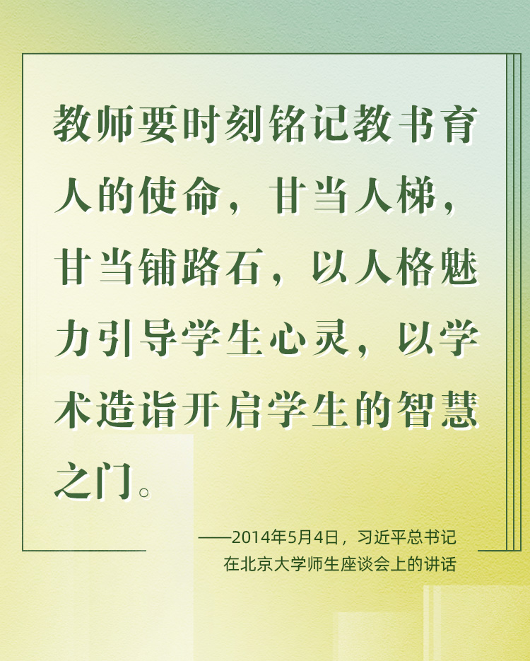 他們帶領學生前行,更新舊知、開掘新知、探索未知;他們肩負光榮使命,為黨育人、為國育才、為民育未來。守教育報國初心、擔立德樹人使命、圓民族復興之夢,建設社會主義現(xiàn)代化強國之路上,教育家精神自當念茲在茲、代代傳承、光芒永綻。