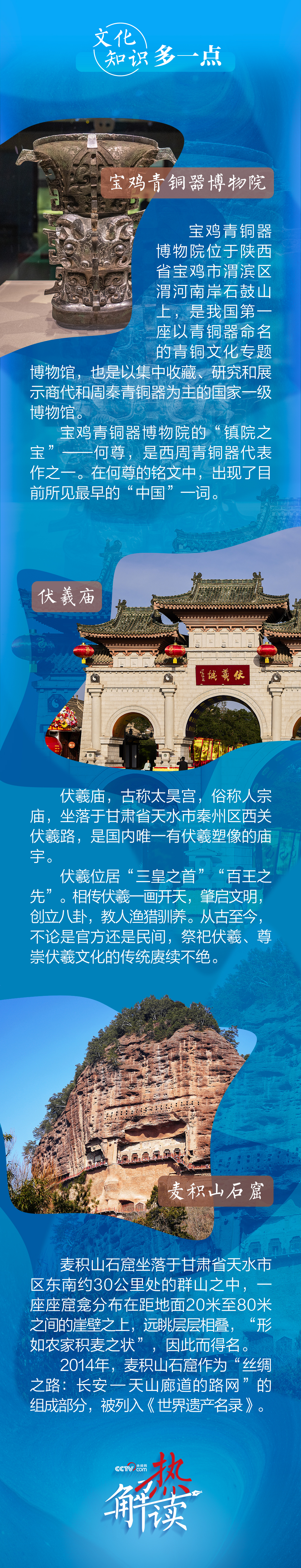 熱解讀9月10日下午至11日上午,習(xí)近平總書記先后來到陜西省寶雞市和甘肅省天水市考察調(diào)研。此次陜甘行中,總書記專門考察了三處文化地標(biāo)。