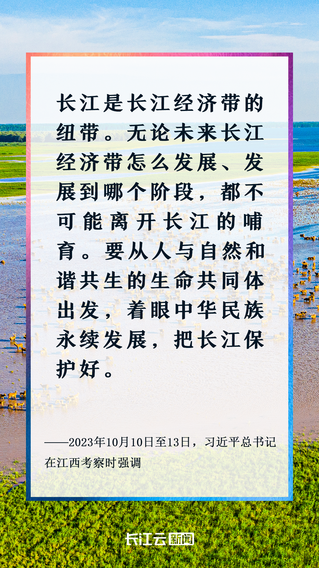 長江,是中華民族的母親河,也是習(xí)近平總書記深深牽掛的河。他曾即興念起人們耳熟能詳?shù)脑娋洌骸熬¢L江頭,我住長江尾。”