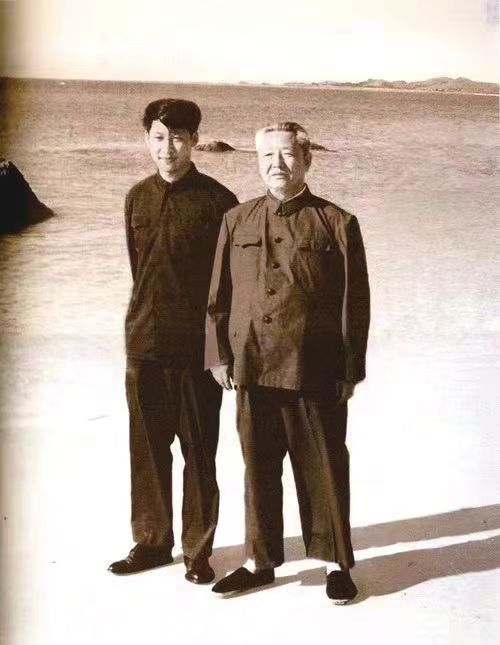 1978年,習(xí)仲勛與習(xí)近平在海南。