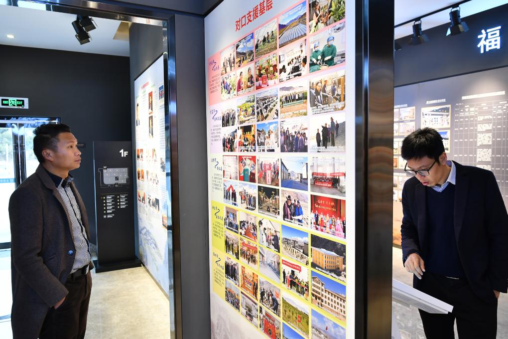 2019年4月1日,人們在全國援藏展覽館內(nèi)參觀。新華社記者李鑫 攝