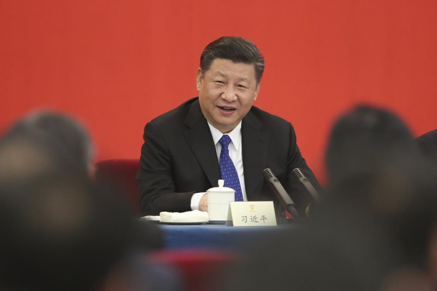 2018年3月4日下午,中共中央總書記、國家主席、中央軍委主席習(xí)近平看望參加全國政協(xié)十三屆一次會議的民盟、致公黨、無黨派人士、僑聯(lián)界委員,并參加聯(lián)組會,聽取意見和建議。 新華社發(fā)(盛佳鵬 攝)