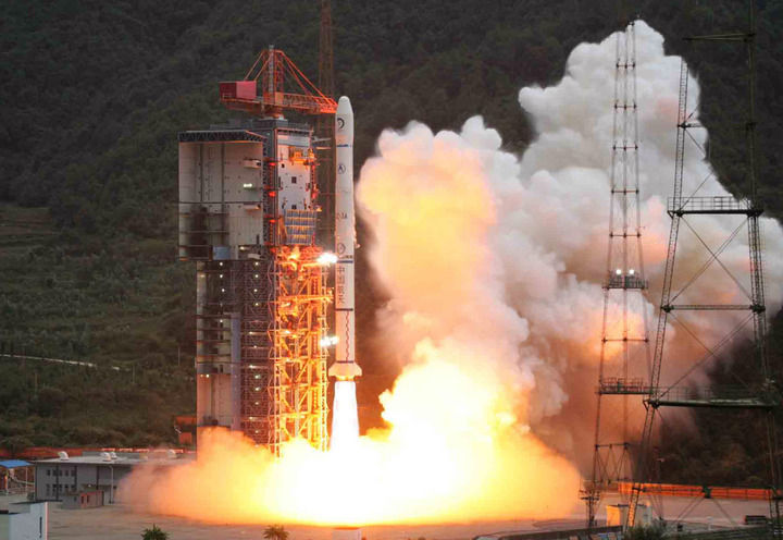 2007年10月24日,搭載著我國首顆探月衛(wèi)星嫦娥一號的長征三號甲運(yùn)載火箭在西昌衛(wèi)星發(fā)射中心三號塔架點火發(fā)射。新華社記者 李剛 攝