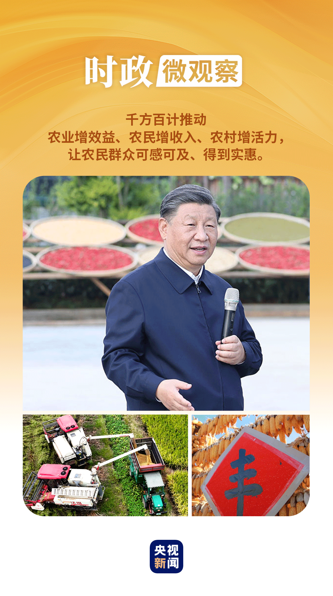 在第七個“中國農(nóng)民豐收節(jié)”到來之際,習(xí)近平總書記代表黨中央,向全國廣大農(nóng)民和工作在“三農(nóng)”戰(zhàn)線上的同志們致以節(jié)日祝賀和誠摯問候,對于堅(jiān)持不懈夯實(shí)農(nóng)業(yè)基礎(chǔ),推進(jìn)鄉(xiāng)村全面振興提出殷切期望和要求——