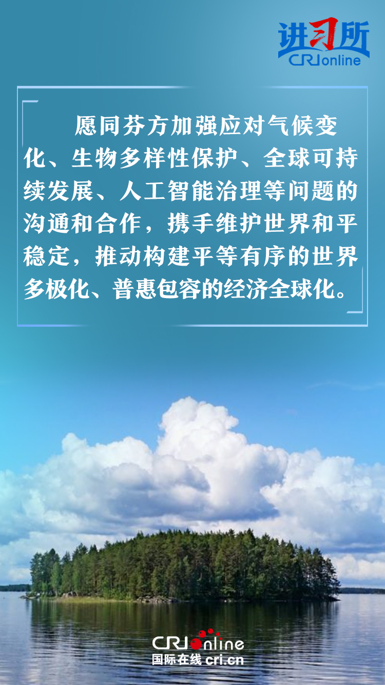 習(xí)近平指出,建交以來,中芬始終友好相處、互尊互信,樹立了國與國之間超越歷史、文化、制度差異,平等交往的典范。中方愿同芬方一道,加強戰(zhàn)略合作,弘揚友好傳統(tǒng),將中芬面向未來的新型合作伙伴關(guān)系進一步推向前進,更好造福兩國和兩國人民,為世界和平和發(fā)展作出新貢獻。