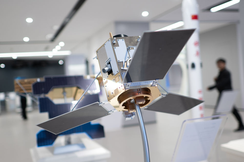 這是在“武創(chuàng)院”展出的“珞珈三號01星”模型。新華社記者 肖藝九 攝