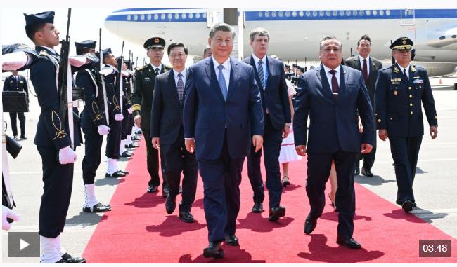 習(xí)近平發(fā)表機(jī)場(chǎng)書面講話,向秘魯政府和秘魯人民致以誠摯問候和良好祝愿。